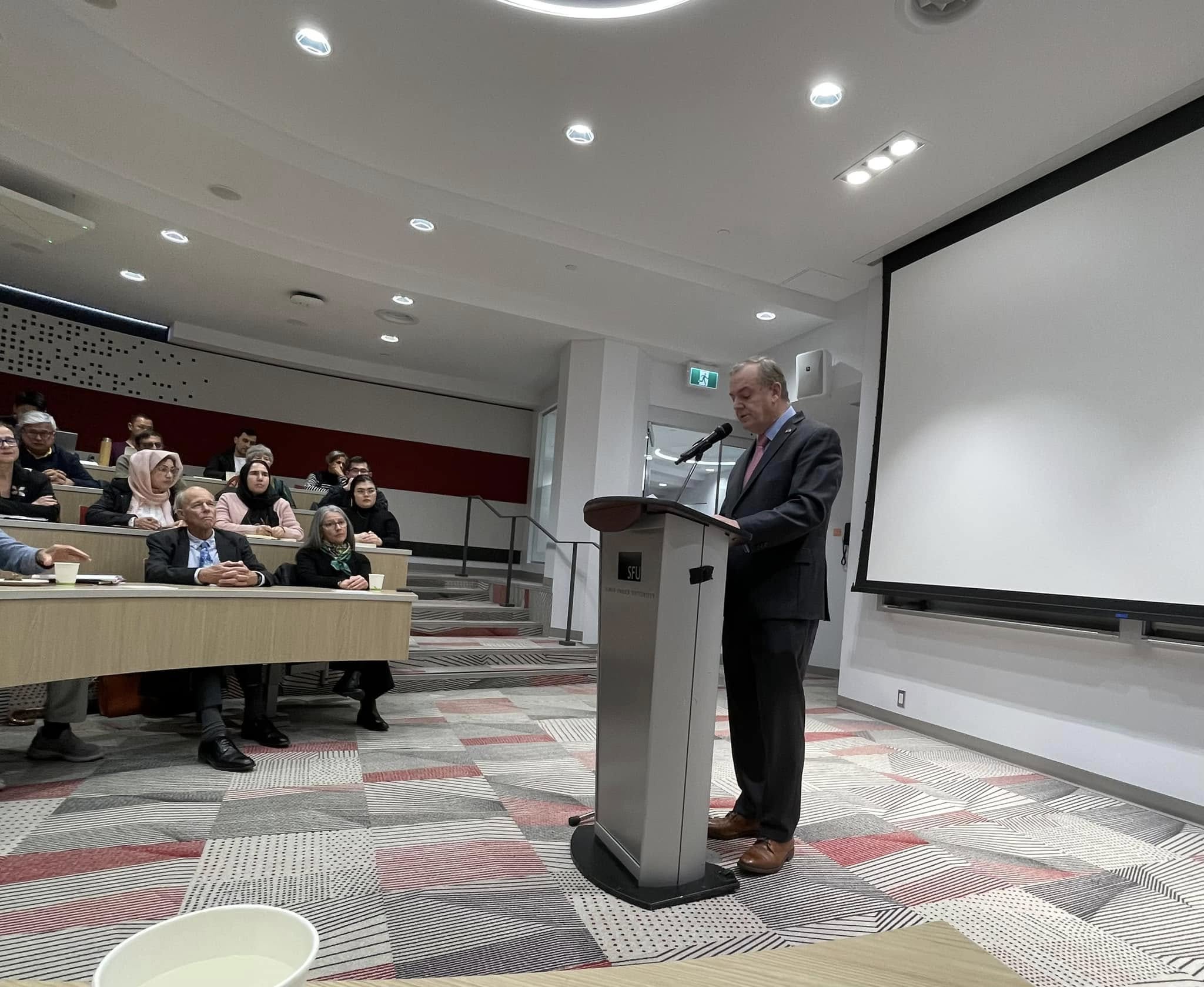 Simon Fraser University hosted an event titled “Canada’s Role in Afghanistan and the Challenges of Wartime Diplomacy” on November 25, 2024. The event featured speakers, including Ambassador Tim Martin, Canada’s former Representative in Kandahar; Mr. Ramin Manawi, Consul General of Afghanistan in Vancouver; Mr. Ricardo Arredondo, Consul General of Argentina in Vancouver (as MC), as well as Consuls General from other nations, SFU students and faculty, and other distinguished guests.