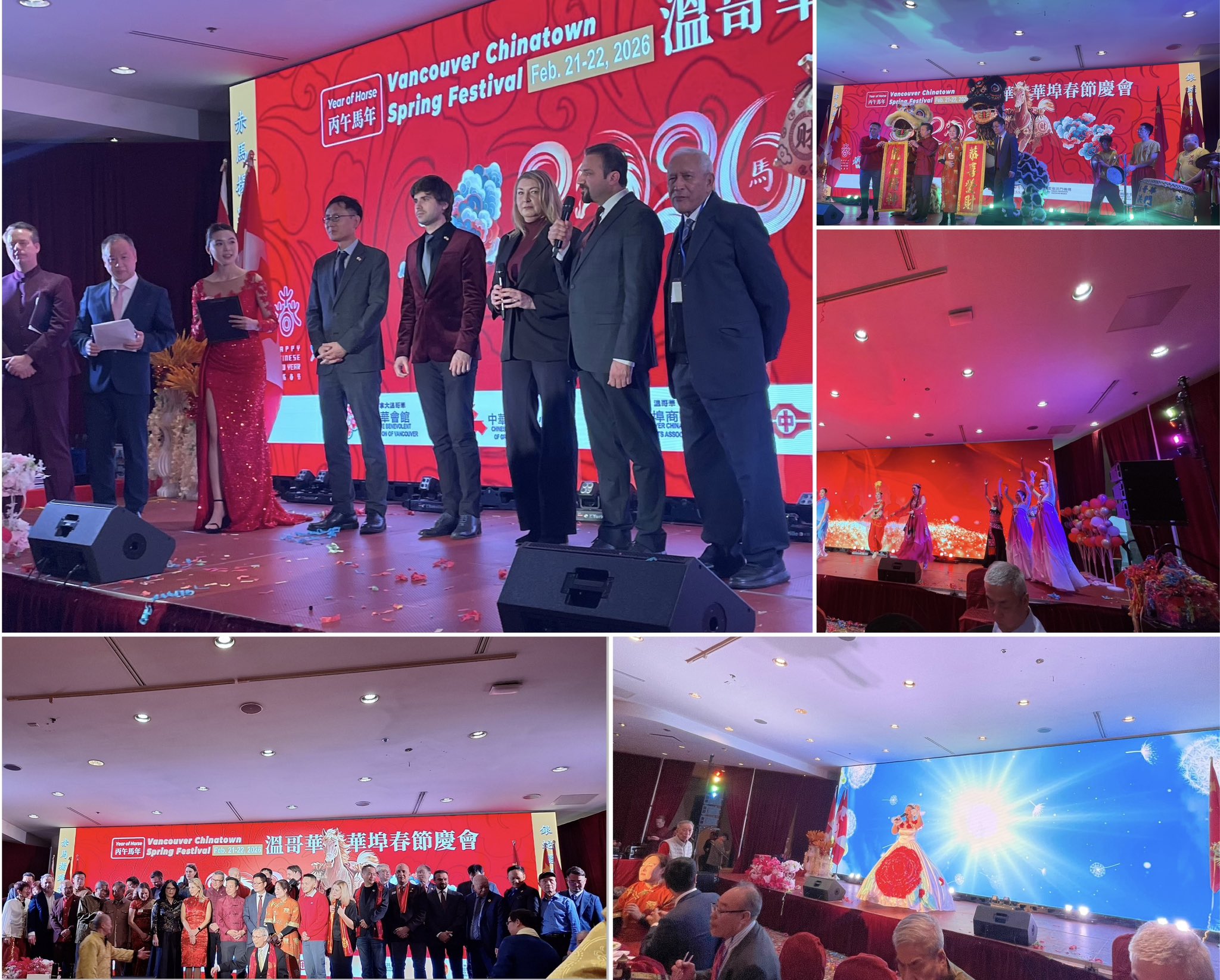 On February 22, he joined the 2026 Vancouver Spring Festival. The celebration, organized by the Chinese Benevolent Association of Vancouver in collaboration with several partner organizations, highlighted the rich cultural heritage and contributions of the Asian communities in BC and Canada. During the event, the Consul General delivered brief remarks extending warm New Year greetings and best wishes for peace, prosperity, and continued success.